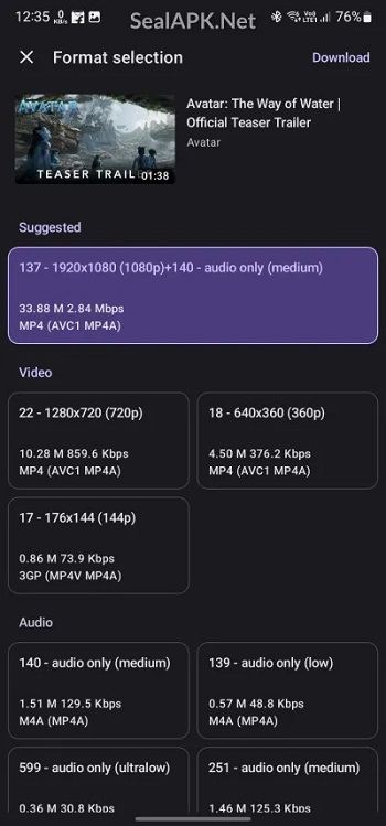 Seal គឺជាកម្មវិធីដែលងាយស្រួលទាញយកវីដេអូ និង តន្រ្តី ពី YouTube.
